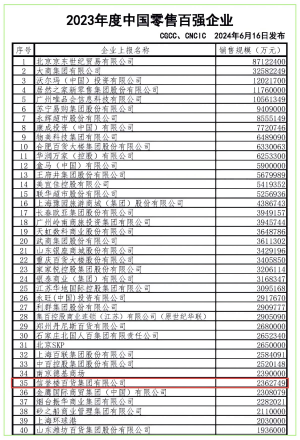 2023年度中國零售百強第35位